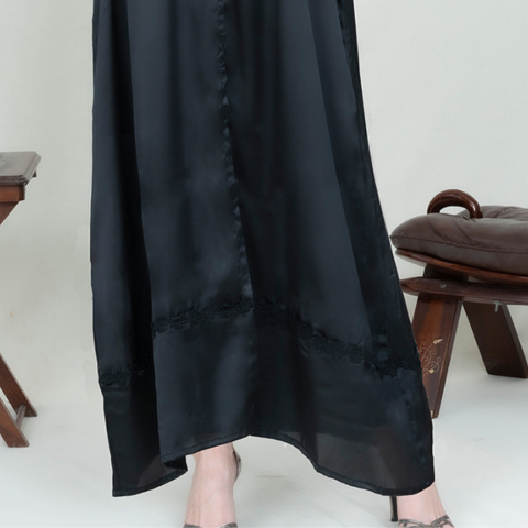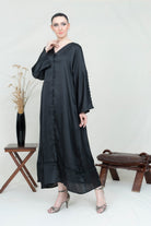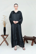 Black Flower Abaya, crafted from fine silk for luxurious comfort. The