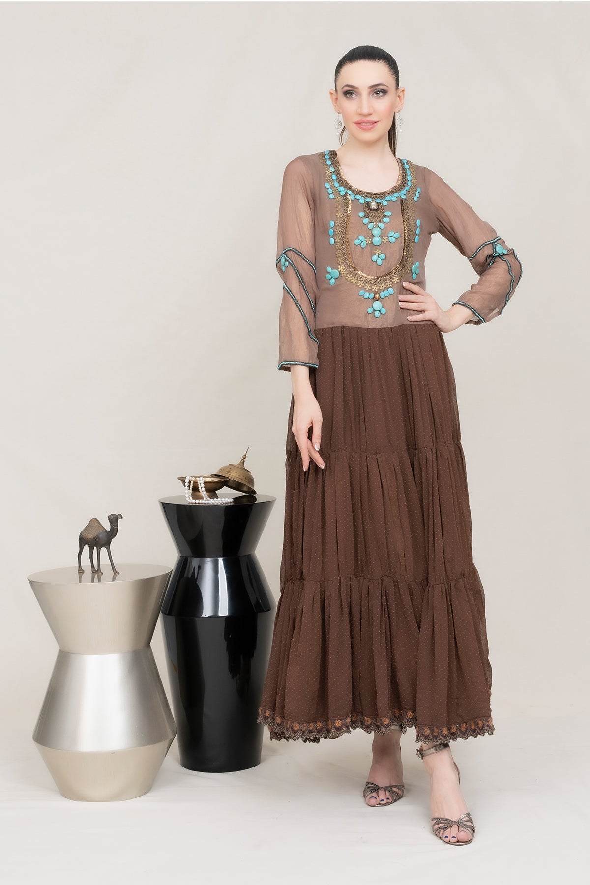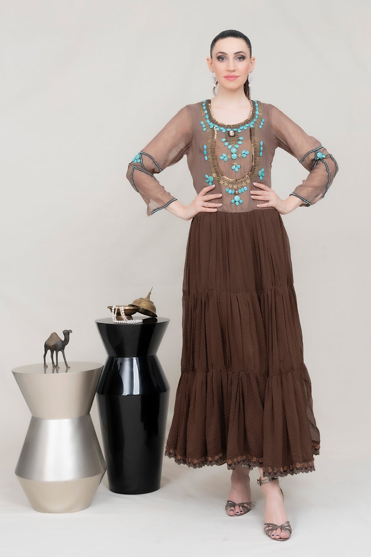 Introducing our captivating Egyptian-inspired tulle dress—a true work of art meticulously hand-stitched and hand embellished