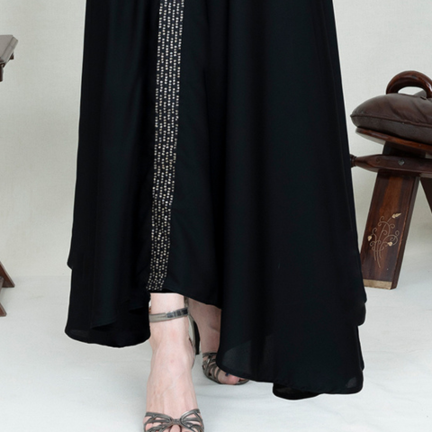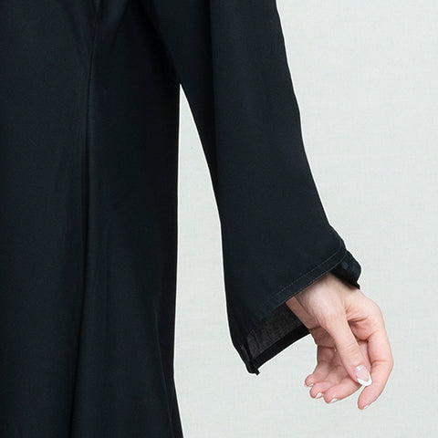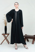 Black Rose a delegate & elegant black abaya. Crafted from satin fabric, it drapes gracefully for
