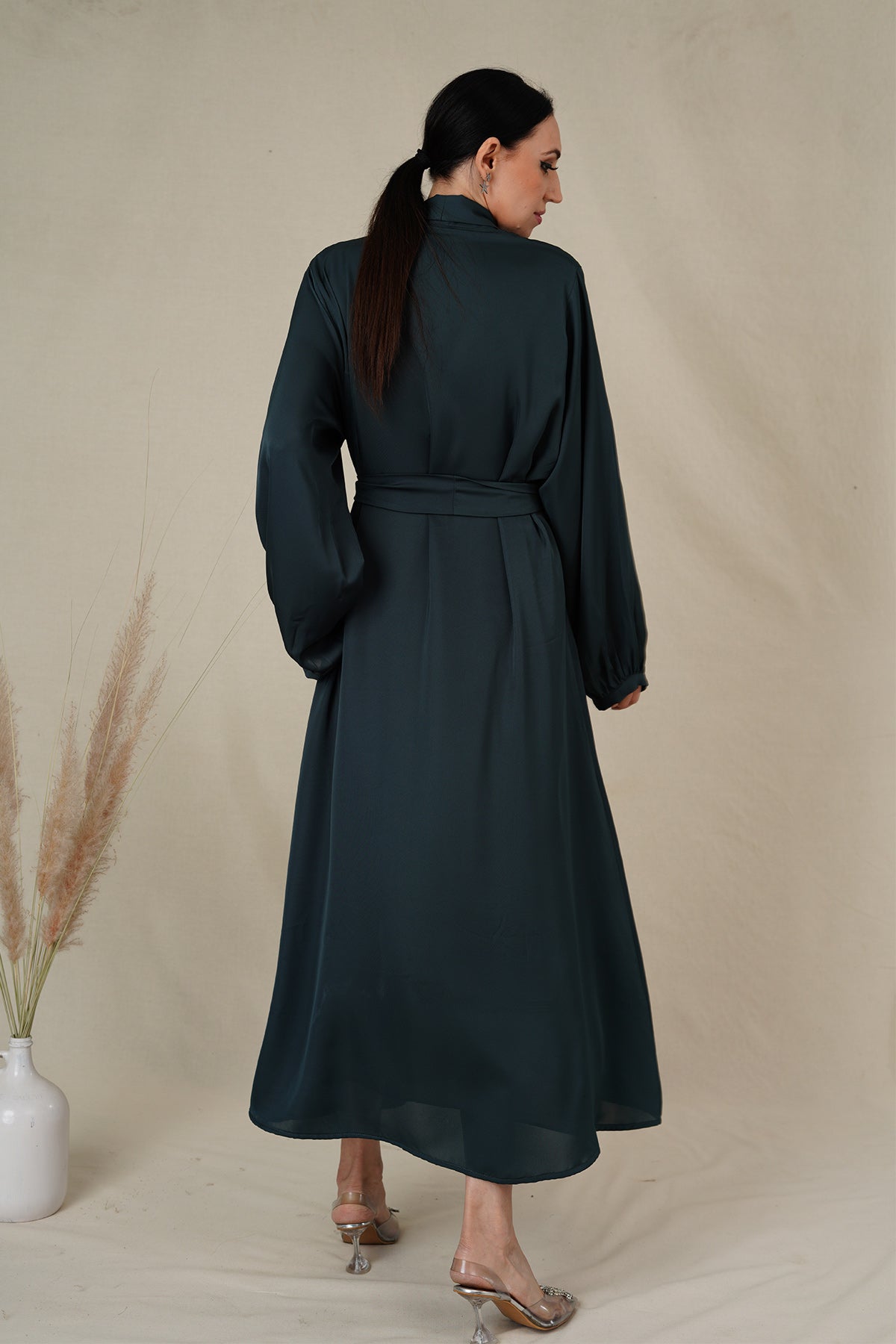 Green blossom abaya is our voguish one—an epitome of sophistication and comfort. Crafted from luxuriously smooth satin fabric,